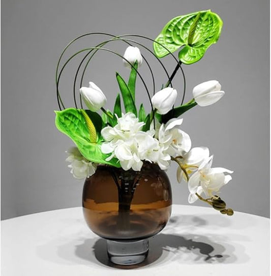 🖤 Contemporary Faux Flowers in Glass – Stylish Decorative Arrangement for Living & Work Space 🌿