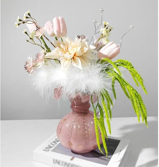 🏠 Modern Glass Vase Flower Decor – Lifelike Faux Floral Arrangement for Living Room & Table 🌷